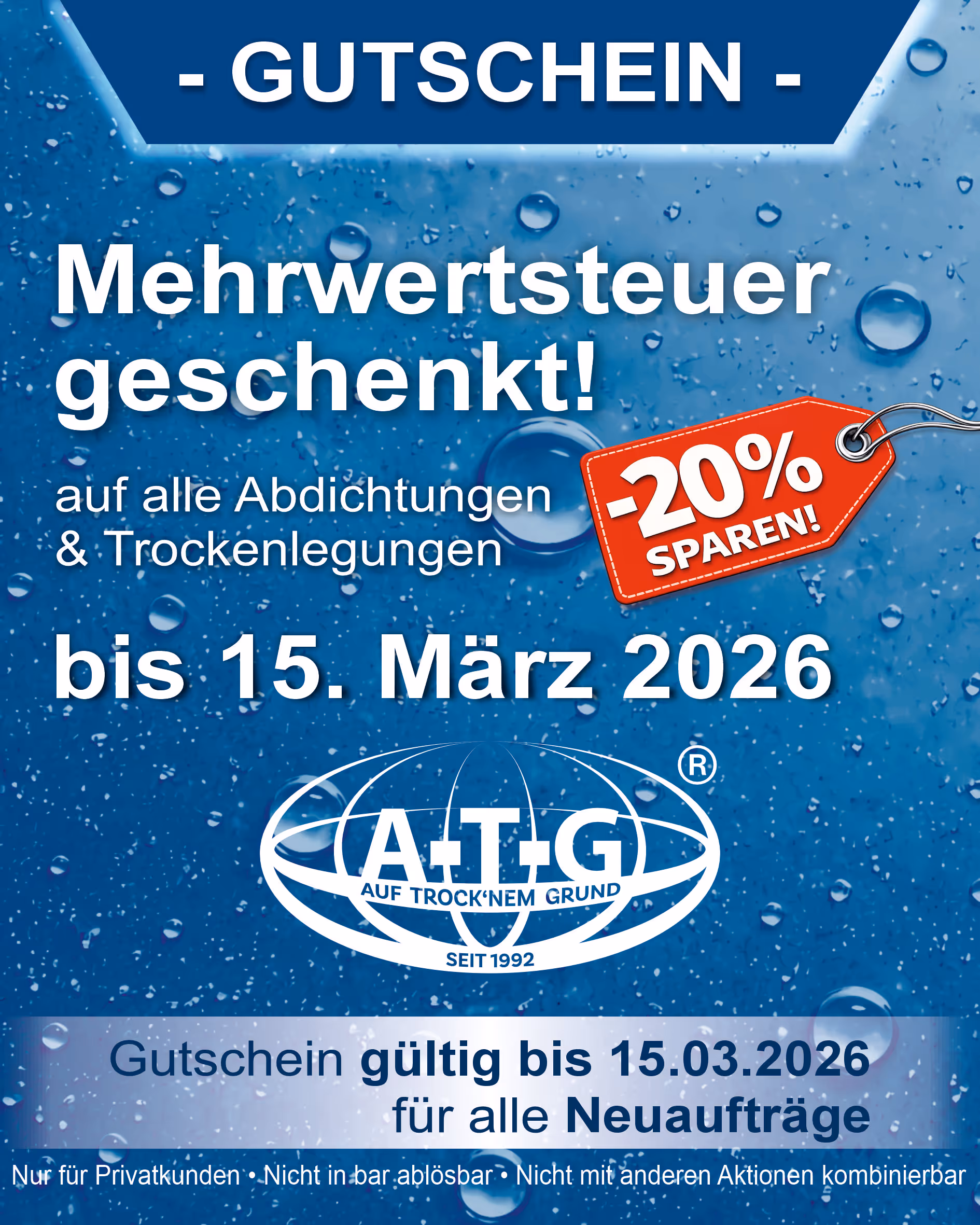 ATG® bietet eine schonende Lösung für langanhaltende Bauwerksabdichtung, ganz ohne Aufgraben. Mit einer Mauertrockenlegung mittels bewährter Niederdruck-Injektion wird Feuchtigkeit blockiert und das Mauerwerk bleibt dauerhaft trocken.
